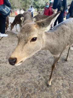 昼食を食べ終え東大寺に向かう途中の奈良公園で遭遇した可愛い鹿さんです。